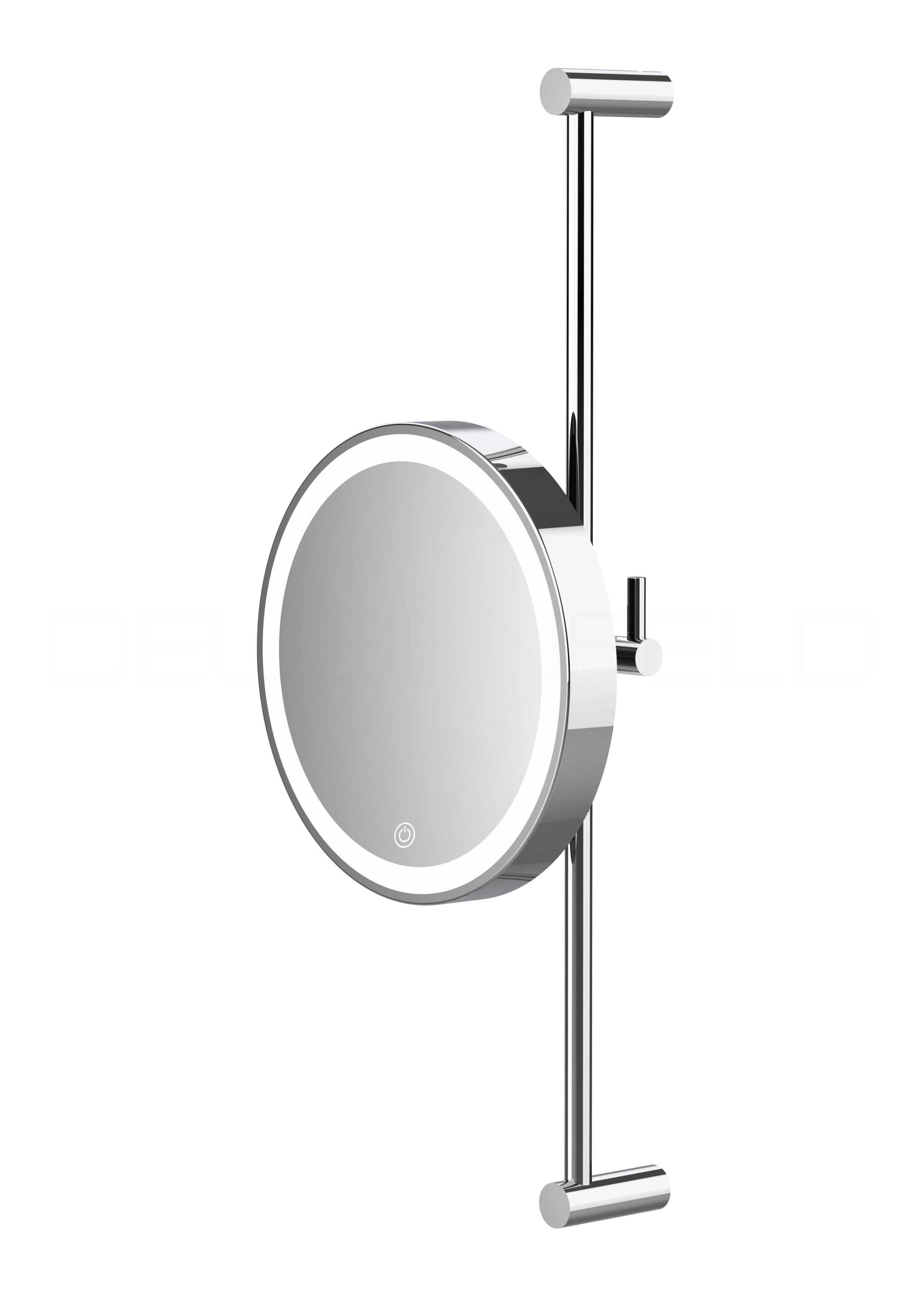 DEUSENFELD WLS70CA - Wand Akku LED Kosmetikspiegel an Stange, höhenverstellbar, Ø20cm, 7-fach Vergrößerung, 50cm, Stangengleiter, 3 einstellbare Lichtfarben, 10 Min. Timer, Dimmer, 3000mAh Lithium Akku, USB-C, inkl. Klebeadapter, verchromt