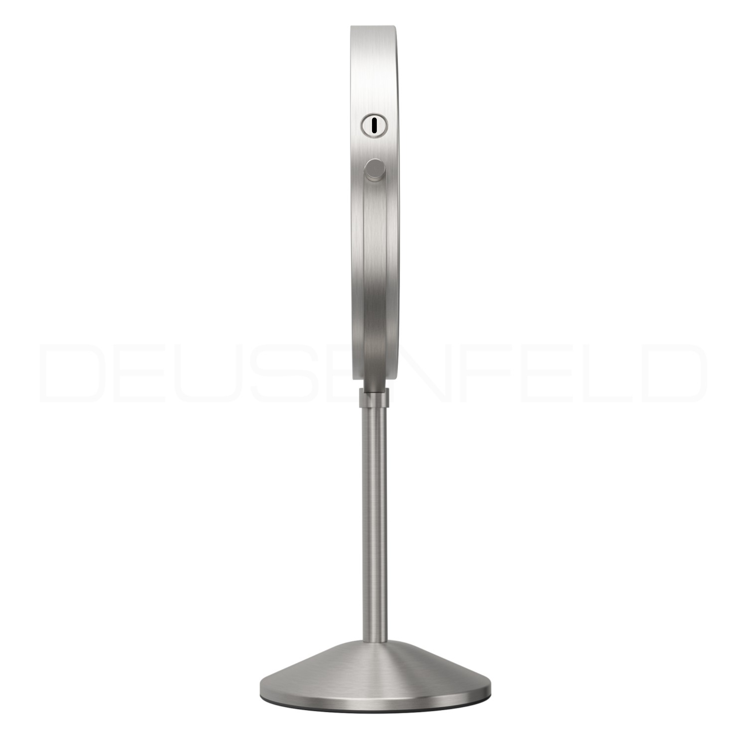 DEUSENFELD SL10EFA - Akku Batterie LED Doppel Stand Kosmetikspiegel, 10x Vergrößerung + Normalspiegel, Ø20cm, 360° horizontal schwenkbar, 3 einstellbare Lichtfarben, 10 Min. Timer, Dimmer, 3000mAh Lithium Akku, USB-C, Edelstahl Finish